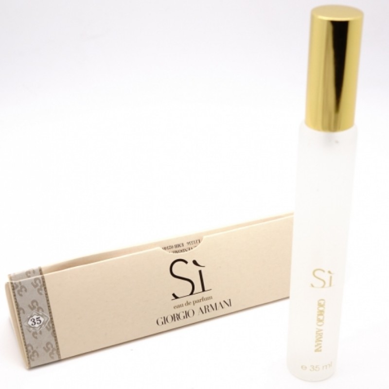 Giorgio Armani Si (треугольник) 35 мл. Выпущенный в 2013 году Si от марки Giorgio Armani классифицируется как женский аромат и принадлежит семействам Шипровые и Цветочные. Его автором является парфюмер Кристин Нажель. Si входит в коллекцию Si. Бергамот, Черная смородина и Мандарин образуют стартовый аккорд композиции, в сердце ─ Нероли, Роза и Жасмин; базу составляют Амброксан, Древесный аккорд, Пачули и Ваниль.